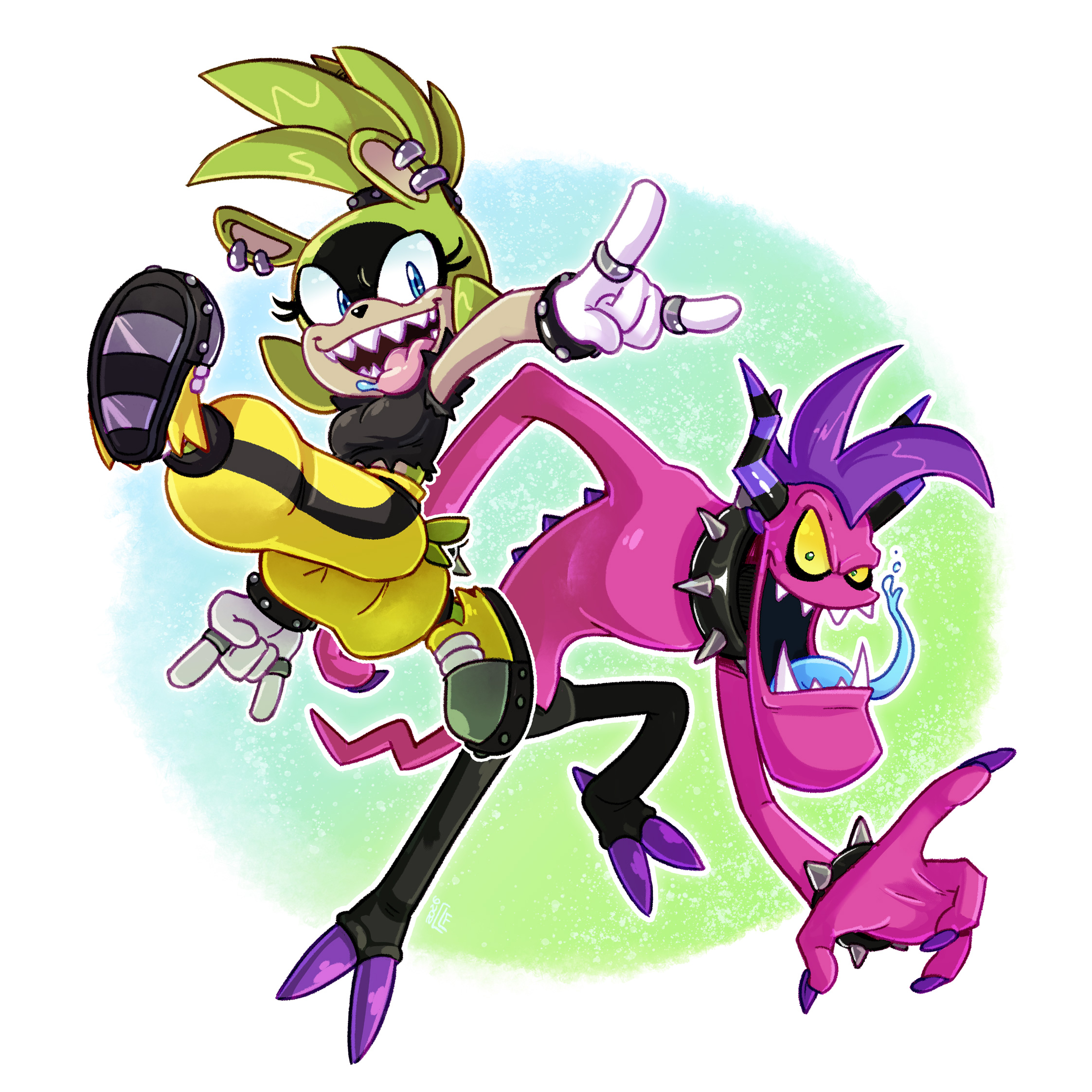 safe37030 artist:francoisl-artblog7 surge the tenrec653 zazz21 tenrec208 zeti54 2016294 devil horns (gesture)108 duo12196 leg up65 looking at viewer8066 mid-air784 mouth open5611 open smile858 outline1785 posing433 saliva204 sharp teeth329 smile13878 smiling at viewer897 spiked bracelet103 spiked collar37 tongue out818 yellow sclera229