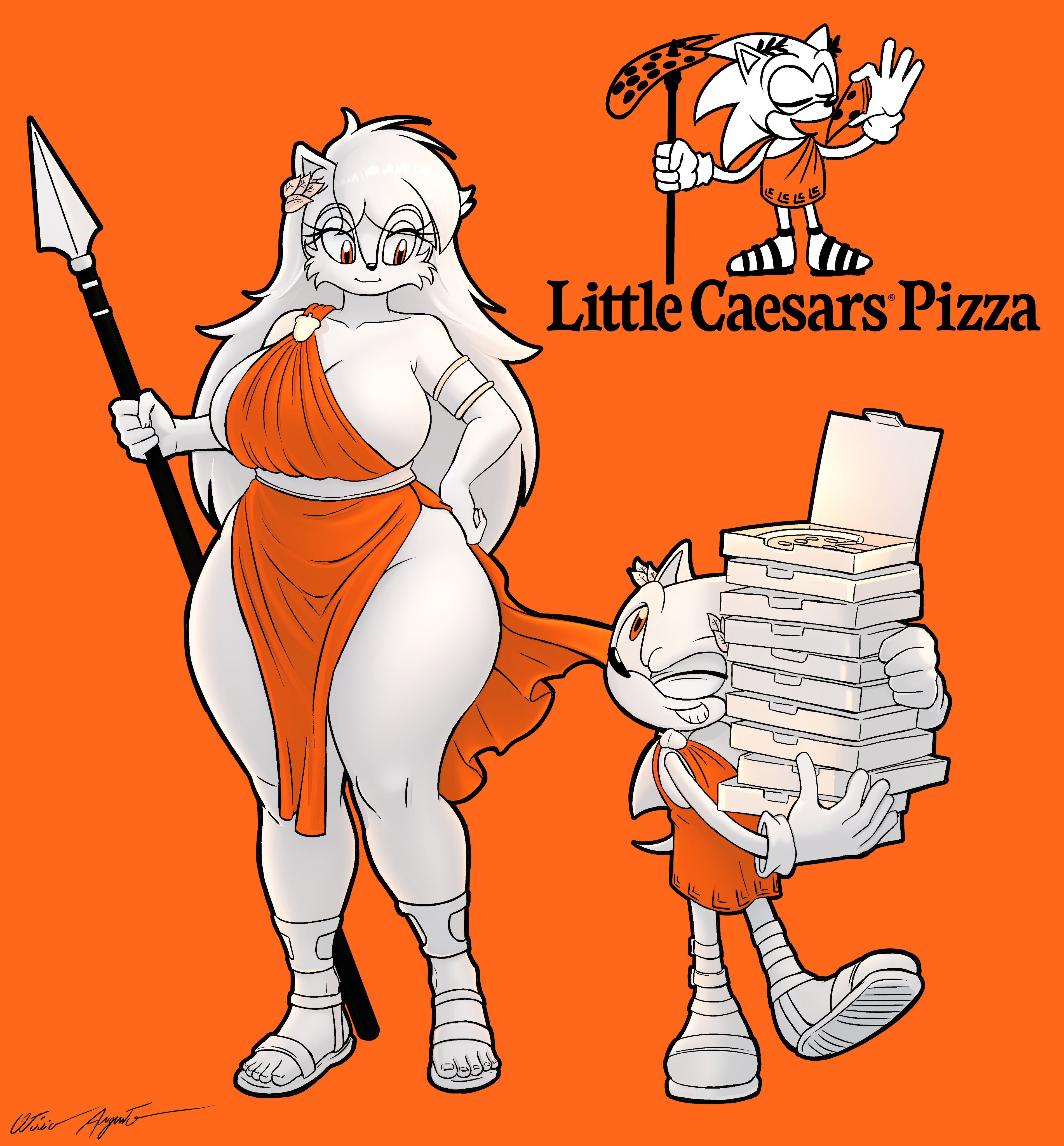 safe38329 artist:azul35art8 sally acorn1466 sonic the hedgehog14065 chipmunk835 hedgehog7738 2026394 alternate outfit1304 busty sally47 clothes1845 duo12849 female6743 food505 height chart10 holding something3721 jacket1101 little caesars pizza1 looking at viewer8473 male6999 pizza15 sally x sonic455 shipping10225 spear14 straight1673 weapon161