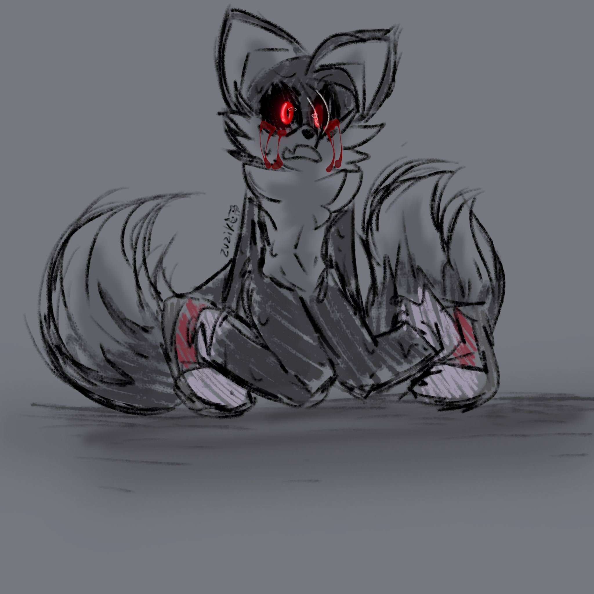 safe38478 artist:kptya44 miles "tails" prower9408 oc2596 oc:tails.exe65 20232667 black sclera566 bleeding246 bleeding from eyes124 blood639 eye clipping through hair478 grey background2492 looking offscreen4482 mouth open6006 signature6227 simple background16062 sitting2457 sketch1931 solo17594