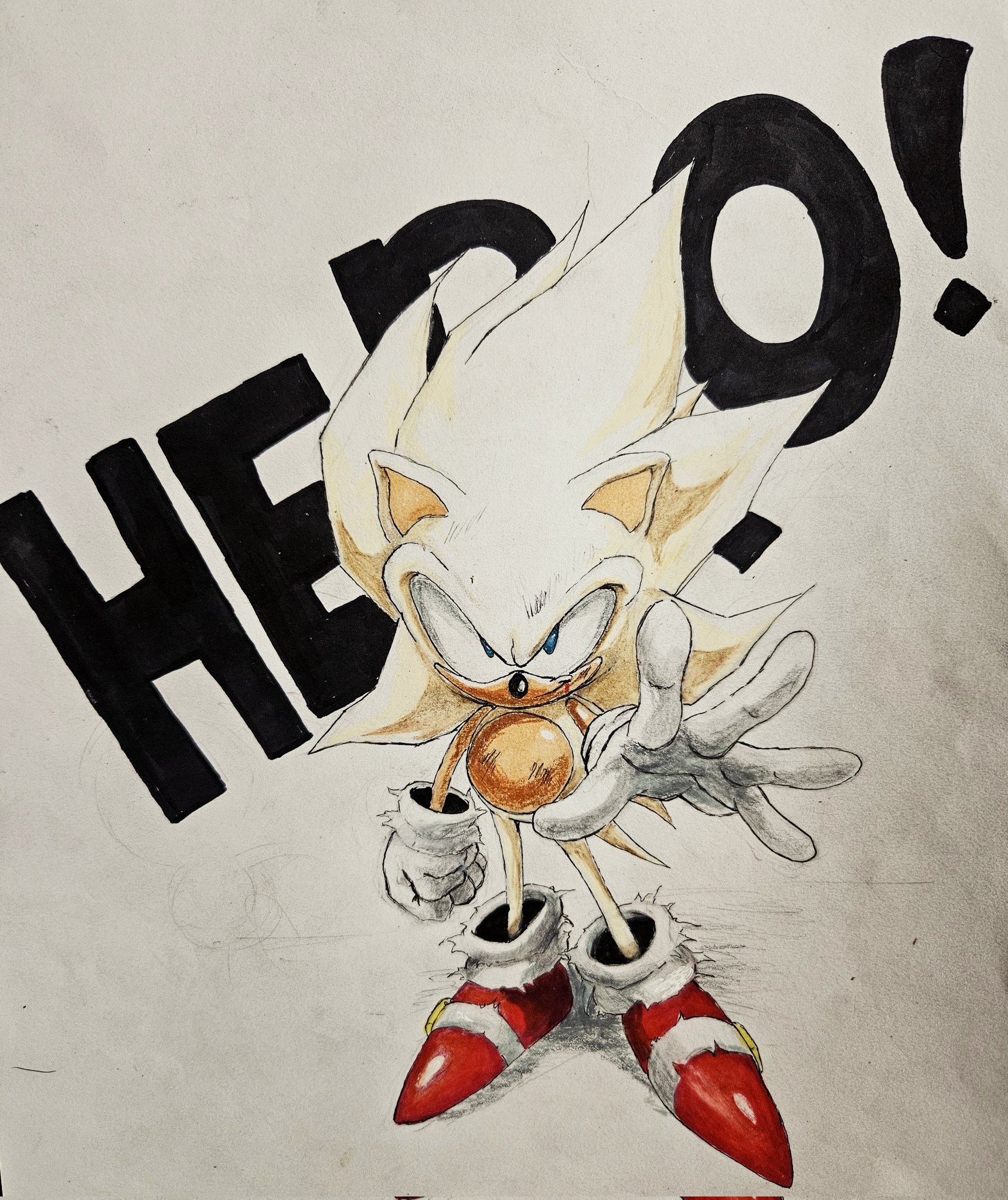 safe38899 artist:juniooneonone403 sonic the hedgehog14307 super sonic614 2026563 alternate eye color154 bleeding251 bleeding from mouth89 blood647 classic sonic1036 english text4537 looking at viewer8738 reaching out32 reaching towards the viewer135 scuff mark10 smile14927 solo17789 standing11337 super form1017 text874 traditional media1626