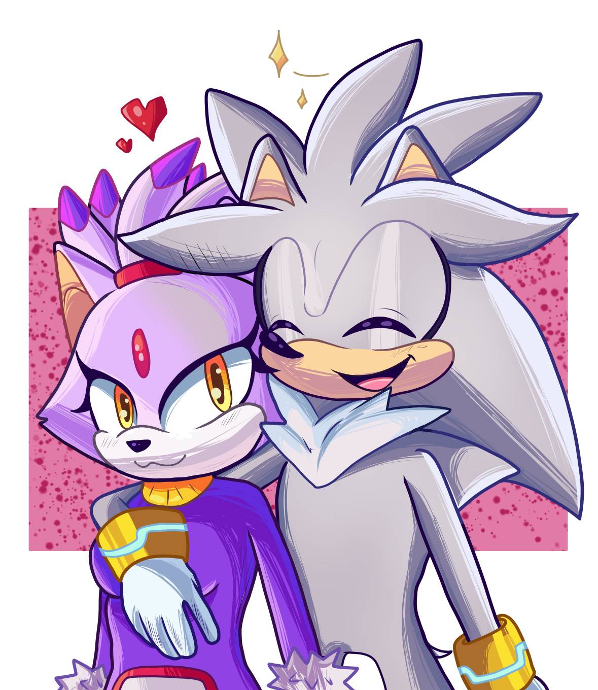 safe40980 artist:shanonuniverse1 blaze the cat3787 silver the hedgehog2097 cat2939 hedgehog9135 20232913 :3242 abstract background7716 arm around shoulders315 blaze x silver116 duo14452 eyes closed5311 female8123 hand on another's chest13 happy352 heart3693 male8397 open smile1659 shipping11365 smile16717 sparkles1154 standing12125 straight2330