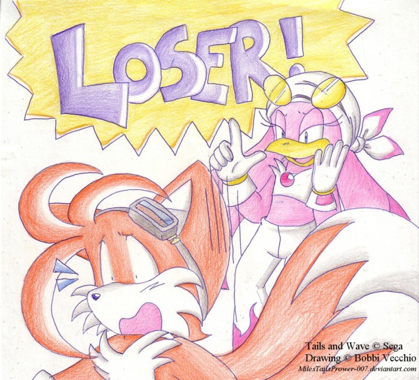 Sonic Riders is fun! I love it so much! …but the Babylon Rogues get a little rude sometimes. I mean, Jet sneezes on his opponents. That's digusting! And if you play the hero storyline, you get to the part where Sonic, Tails, Knuckles and Amy meet Wave. And they don't exactly make aquaintance on the best of terms.