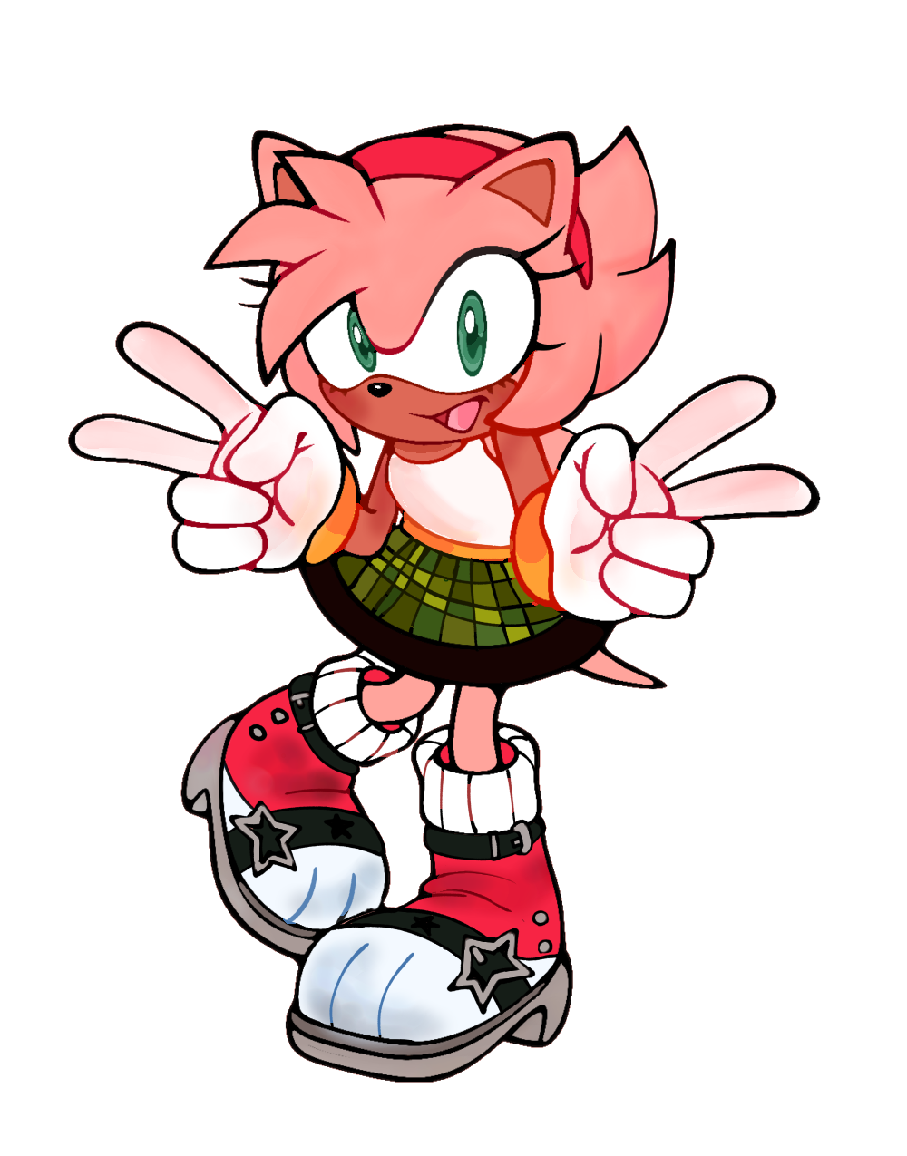 safe35435 artist:emenens17 amy rose5591 20252818 blushing6318 boots910 clothes1501 dark skin344 double v sign121 flat colors1160 redesign802 redraw1290 simple background14141 skirt463 smile13109 smiling at viewer761 solo16023 star (symbol)727 tank top72 transparent background1769 v sign990