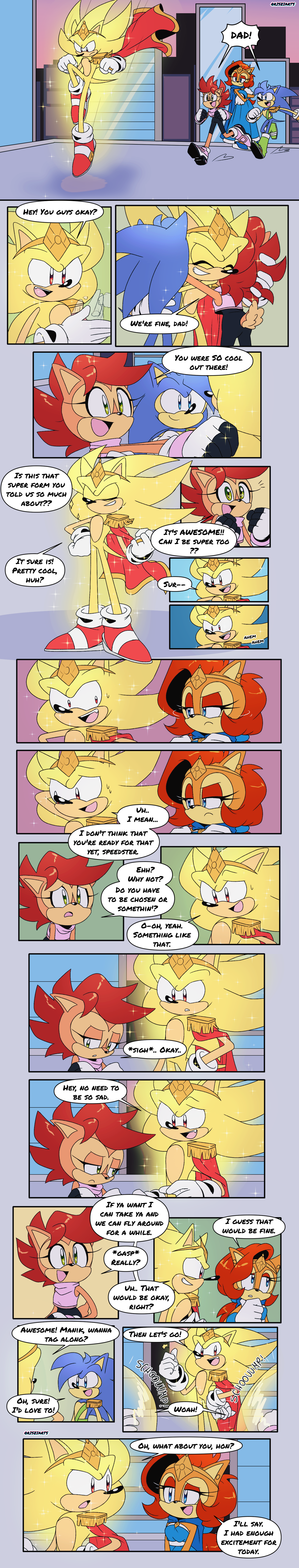 safe35658 artist:risziarts105 manik acorn35 sally acorn1191 sonia acorn34 sonic the hedgehog12792 super sonic560 chipmunk503 hedgehog6898 20232473 building31 child374 comic640 dialogue2524 duo11461 english text4039 king sonic26 quartet70 queen sally acorn18 ringblader5 sally x sonic247 shipping9450 straight1208 super form937 teenager81