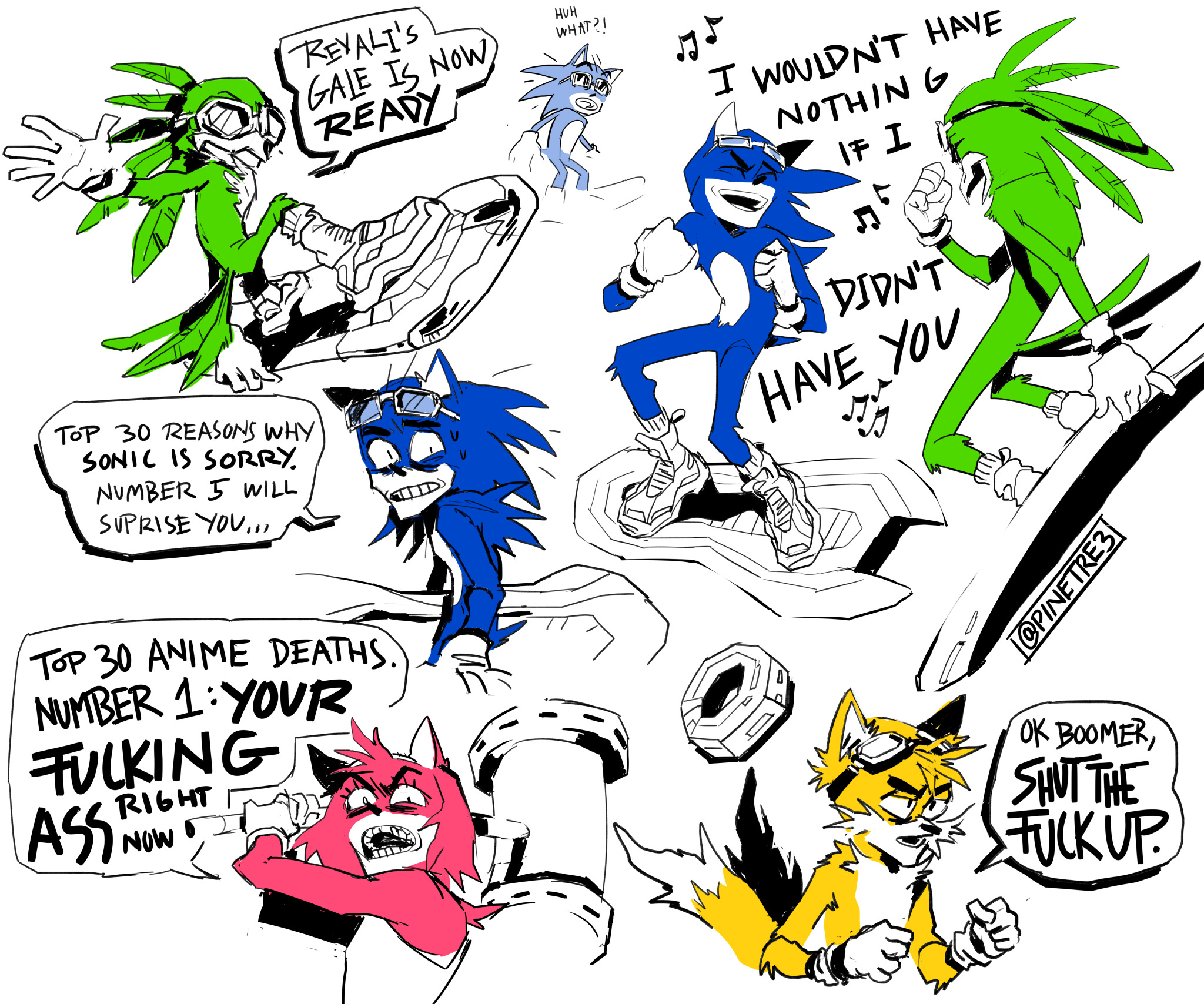 safe35658 artist:p3-archive2 amy rose5610 jet the hawk321 miles "tails" prower8916 sonic the hedgehog12792 bird381 fox2449 hedgehog6898 2020950 dialogue2524 english text4039 extreme gear220 faic103 glasses373 goggles786 group1264 meme595 nightmare fuel20 piko piko hammer459 real-time fandub games19 sonic riders351 speech bubble1278 sunglasses457 talking167 text545 vulgar166