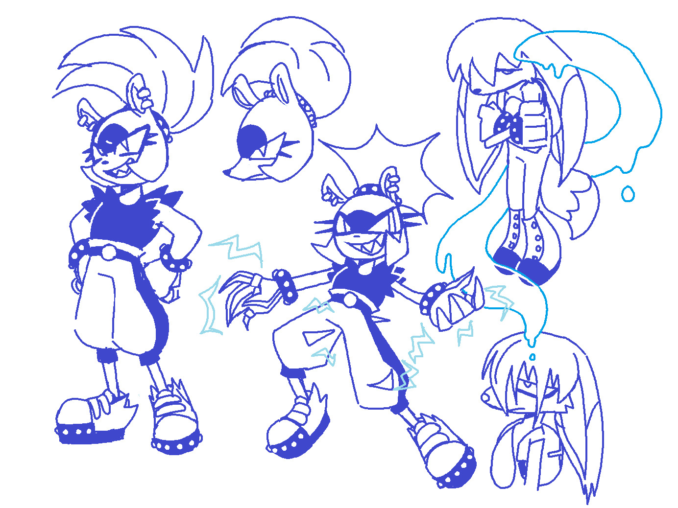 safe36050 artist:velveteen-vampire18 kit the fennec548 surge the tenrec648 tenrec203 20232511 claws479 clenched teeth1820 duo11696 electricity294 fennec173 frown4471 lidded eyes3829 line art1553 looking at viewer7832 looking offscreen4179 monochrome1972 sharp teeth317 simple background14599 smile13437 smiling at viewer817 standing10308 tentacle86 water434 white background7053