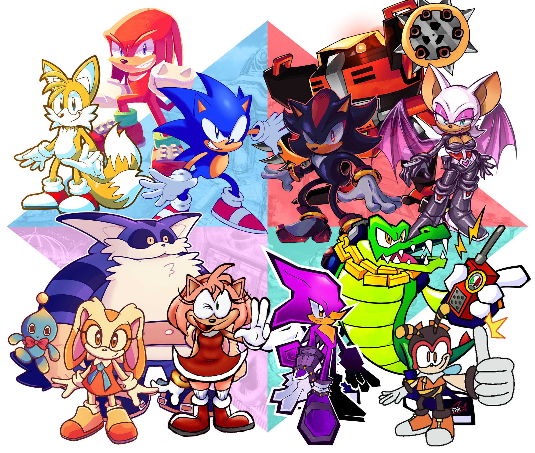 A group of us got together to redraw an early render of the playable characters in Sonic Heroes. Check out all of the artists below!
