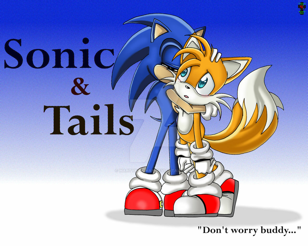 safe36242 artist:martyna-chan1 miles "tails" prower9015 sonic the hedgehog13055 fox2538 hedgehog7232 2011139 blushing6411 character name973 deviantart watermark185 dialogue2567 duo11786 duo male378 english text4140 eyes closed4539 holding them947 hugging1192 male6296 males only1182 obtrusive watermark165 standing10363 text605 watermark481