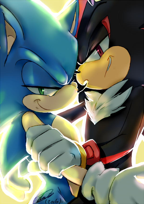 safe36558 artist:f-sonic13 shadow the hedgehog6065 sonic the hedgehog13235 hedgehog7329 2016288 clenched teeth1846 duo11947 duo male406 gay5079 holding arm51 holding each other1061 lidded eyes3895 looking at viewer7933 male6412 males only1213 shadow x sonic1730 shipping9660 signature5968 simple background14888 smile13650 smiling at viewer858 smirk56 standing10463 yellow background332