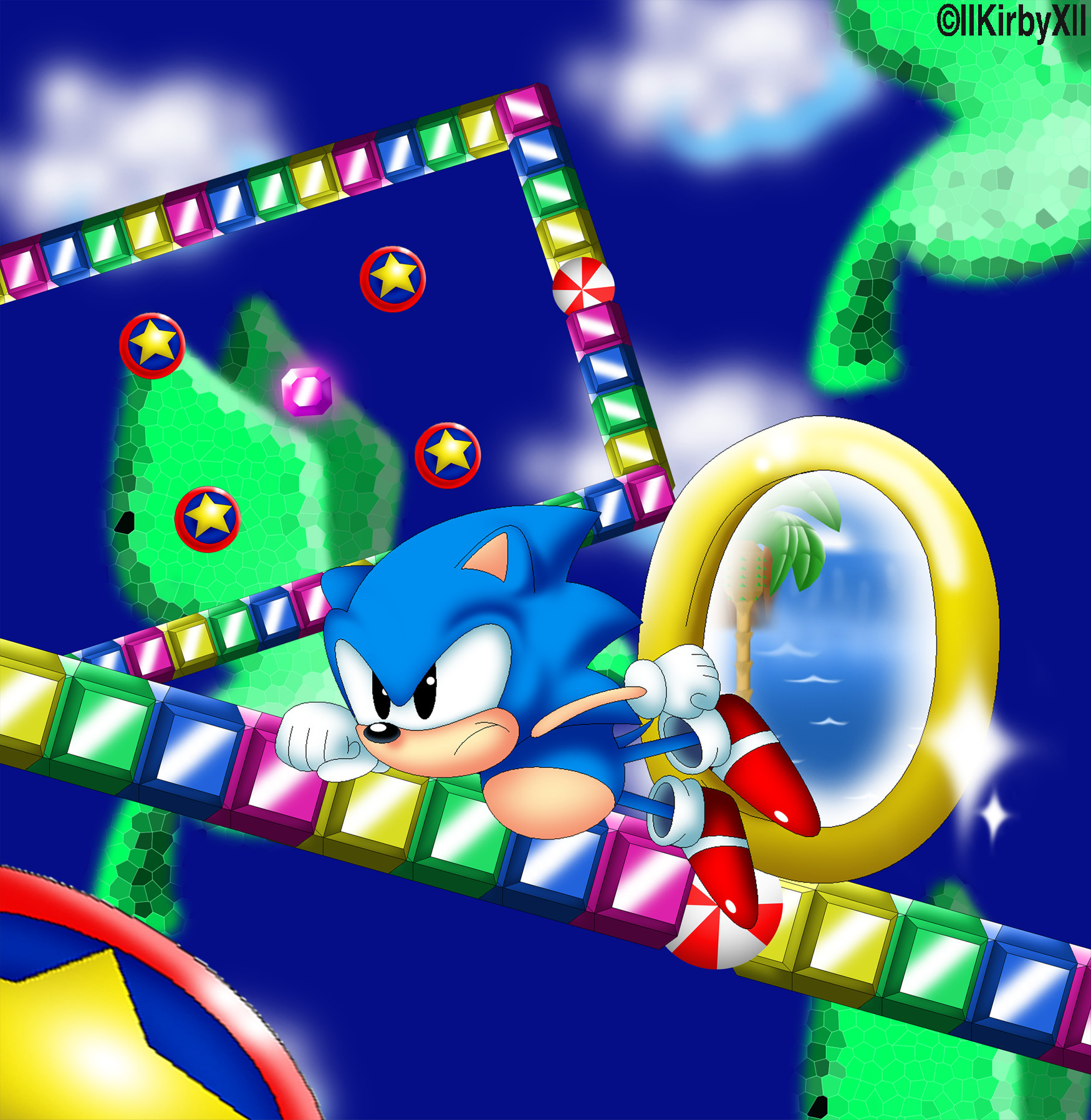 safe36682 artist:jdoesstuff5 sonic the hedgehog13301 bird408 hedgehog7354 sonic the hedgehog (1991)40 2011148 abstract background6985 bumper7 chaos emerald582 classic sonic984 clenched fists631 frown4544 looking offscreen4228 male6448 mid-air775 palm tree224 portal14 ring553 solo16746 solo male471 sparkles1005 special stage19