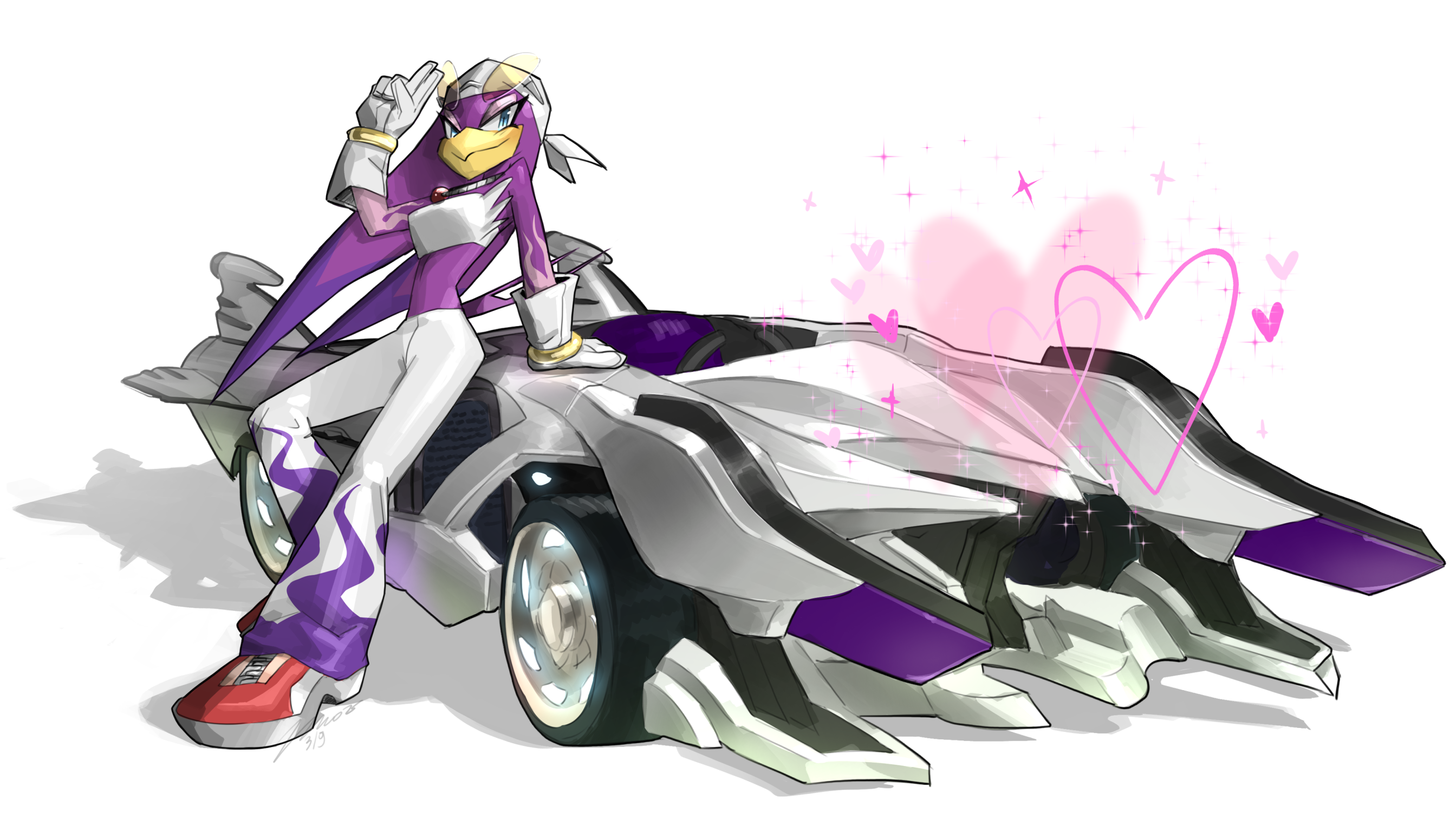 safe36577 artist:oiix0xiio7 wave the swallow249 bird408 20253353 car60 female6072 heart3151 leaning41 leaning back52 leaning on something13 looking at viewer7939 simple background14899 solo16702 solo female371 sonic racing crossworlds35 sparkles1005 standing10469 vehicle25 white background7272