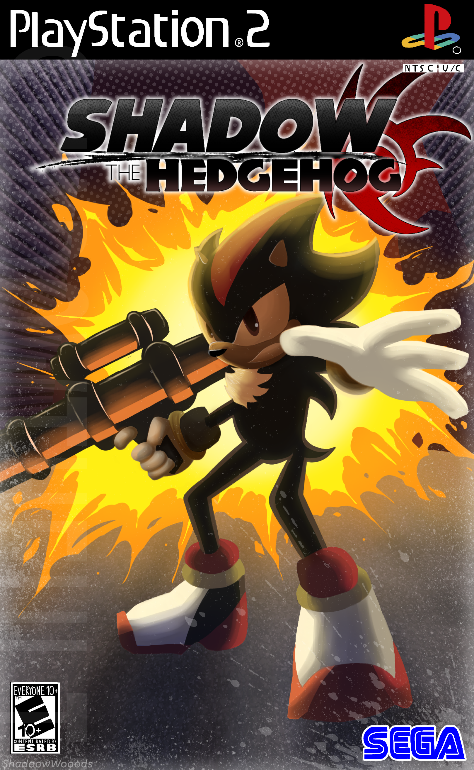 safe36738 artist:shadoowwooods1 shadow the hedgehog6110 hedgehog7369 20244358 bazooka21 box art64 clenched teeth1858 explosion52 holding something3338 male6463 ps22 redraw1350 sega logo67 shadow the hedgehog (video game)137 shadow's logo49 solo16775 solo male471 standing10534