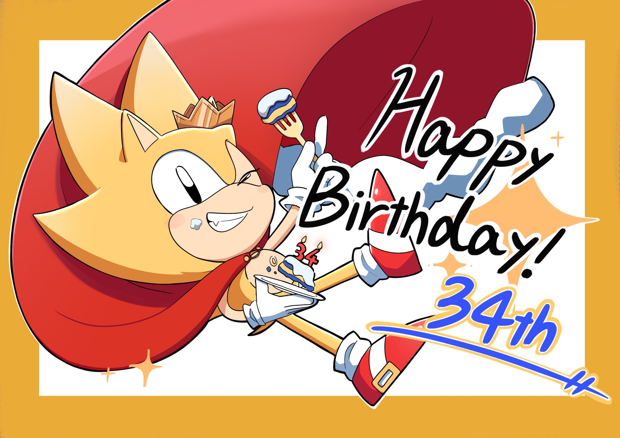 safe36782 artist:oudooooon42795 sonic the hedgehog13362 super sonic576 20253423 birthday109 border568 cake81 cape314 classic sonic986 crown96 english text4196 food434 fork22 grin410 happy birthday21 holding something3349 looking at viewer8004 simple background14995 smile13756 solo16784 super form960 white background7337 wink1131