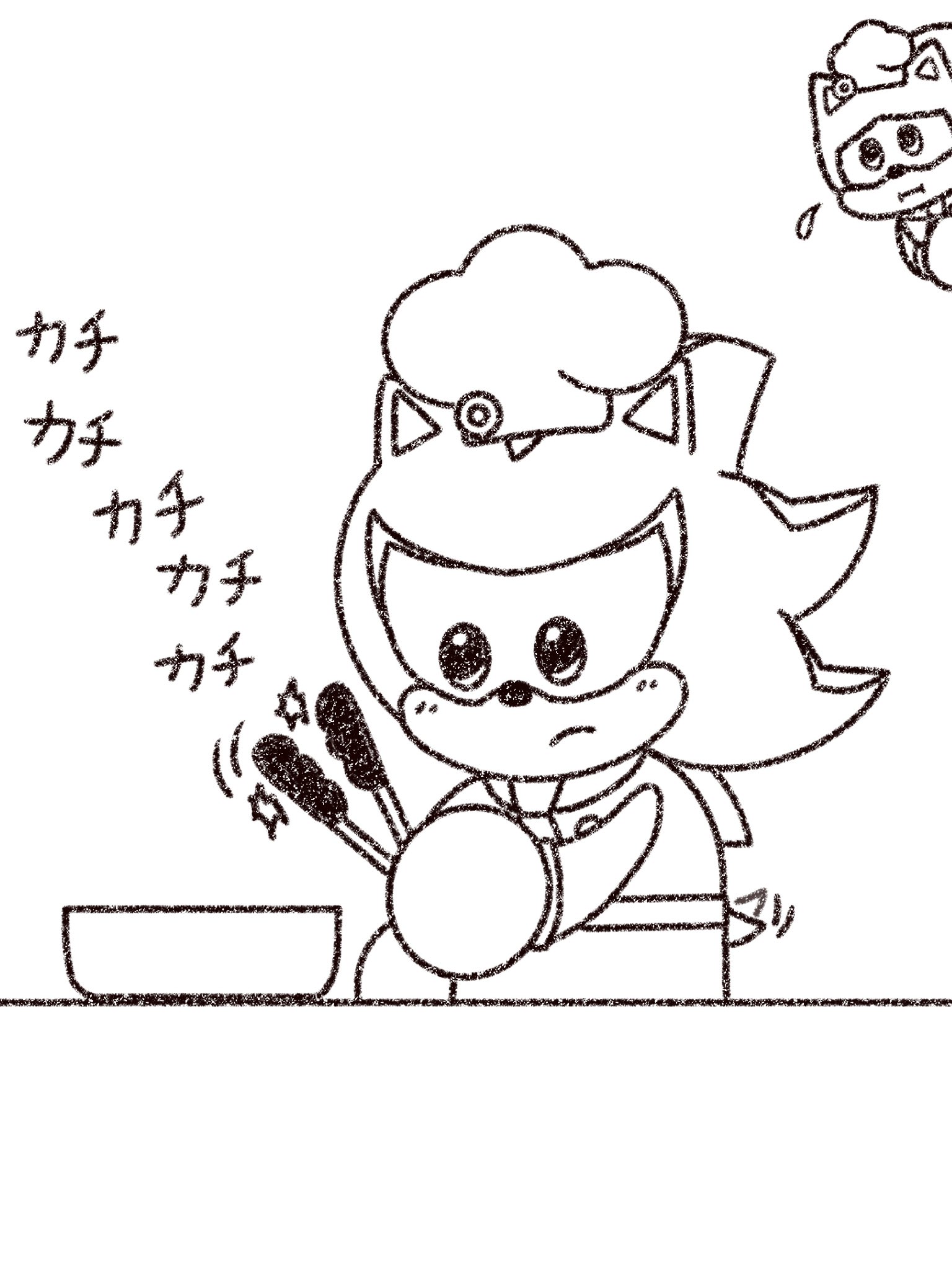 safe36962 artist:om_2007016 shadow the hedgehog6144 sonic the hedgehog13461 20253485 chef hat4 duo12159 greyscale901 hat428 holding something3385 japanese text443 looking at them2107 monochrome2127 simple background15115 sketch1819 sonic and friends7 tongs1 wagging tail389 white background7389