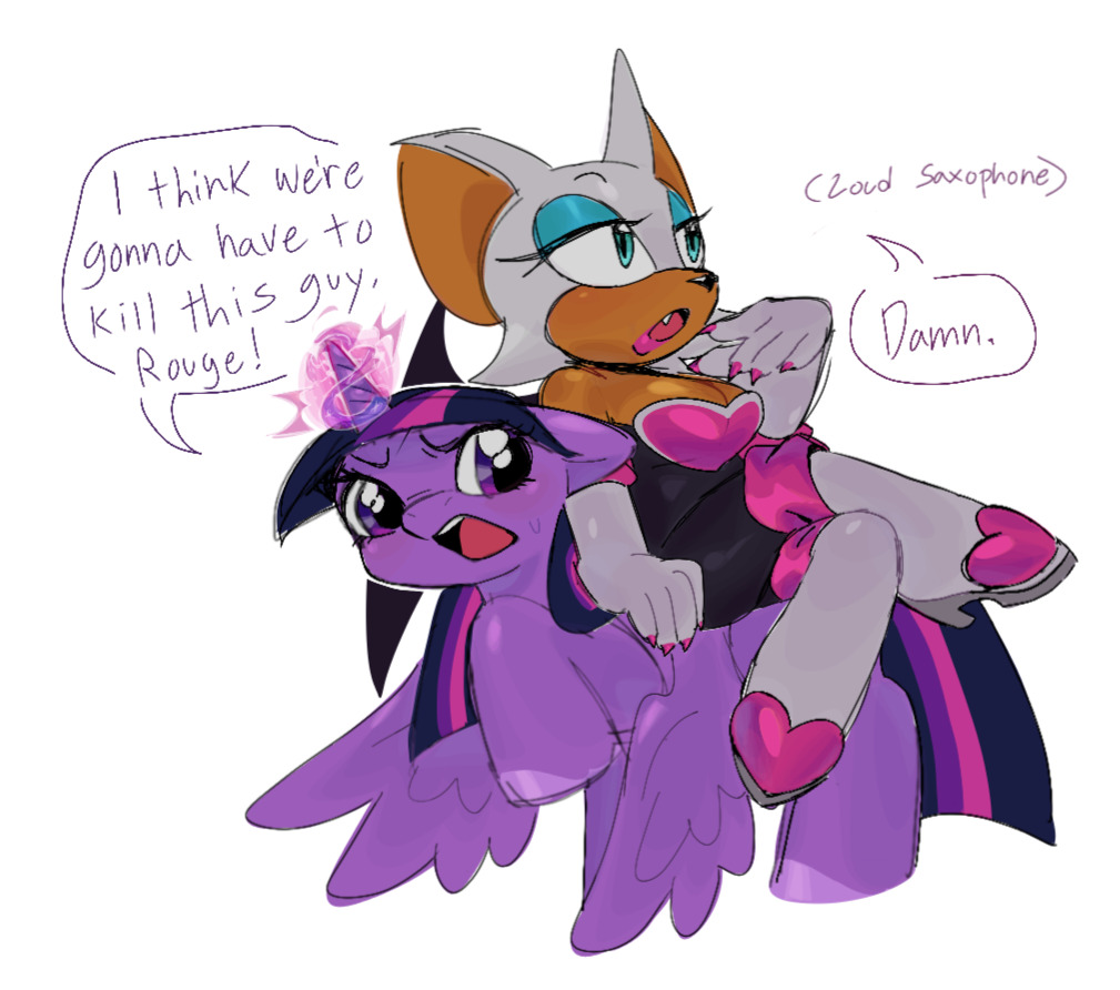 safe37032 artist:burnttoawst3 rouge the bat1761 bat495 20244384 alicorn30 crossover911 dialogue2602 duo12198 english text4220 flying1260 i think we're gonna have to kill this guy6 meme623 my little pony218 pony129 simple background15166 text658 twilight sparkle37 white background7415