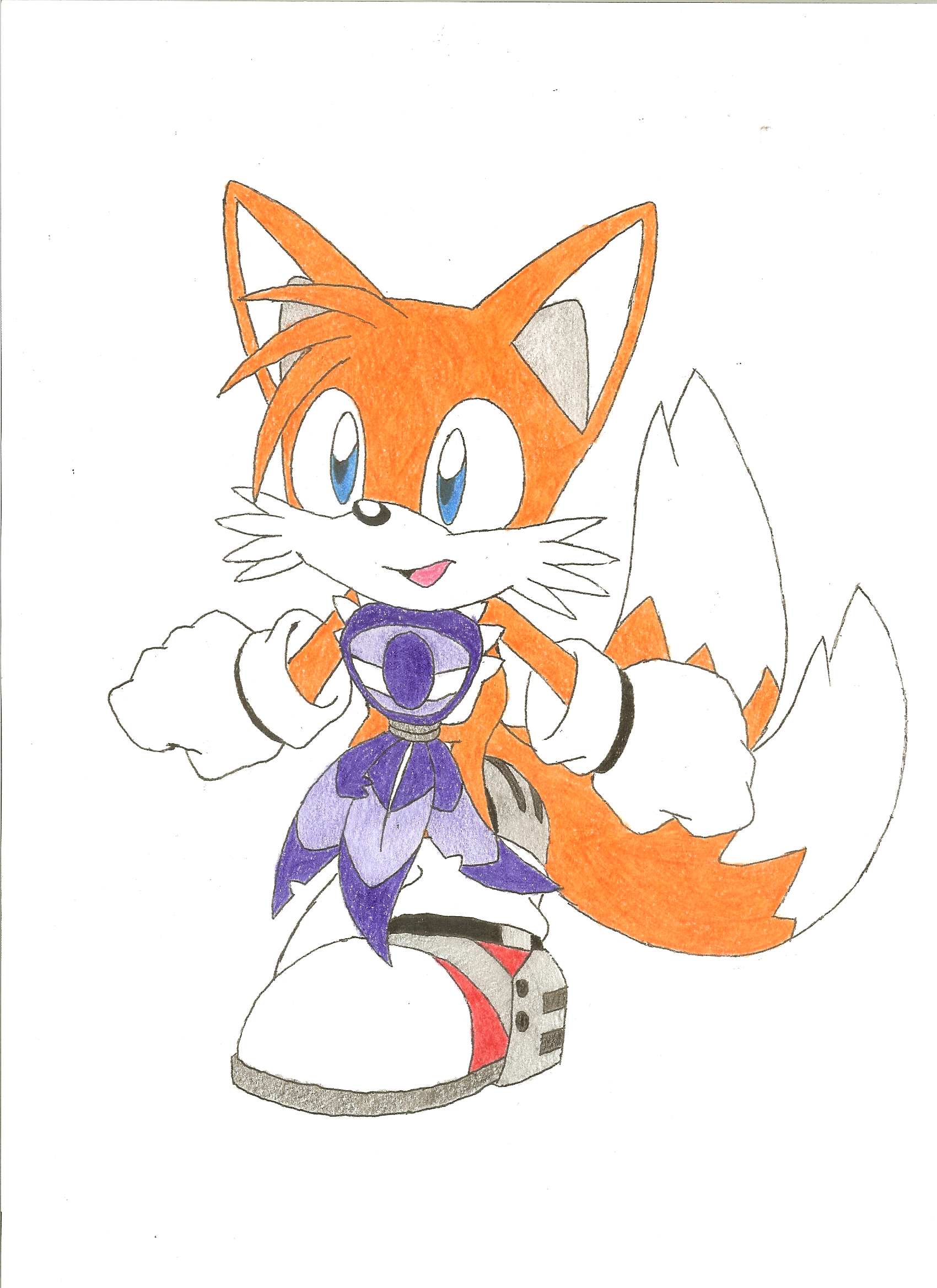 I drew Tails here with everything he gets in Sonic Adventure. I always thought he looked cool with the jet anklet, and the rhythm badge. Ya try and tell me, that how I draw does not look better than Sonic X!