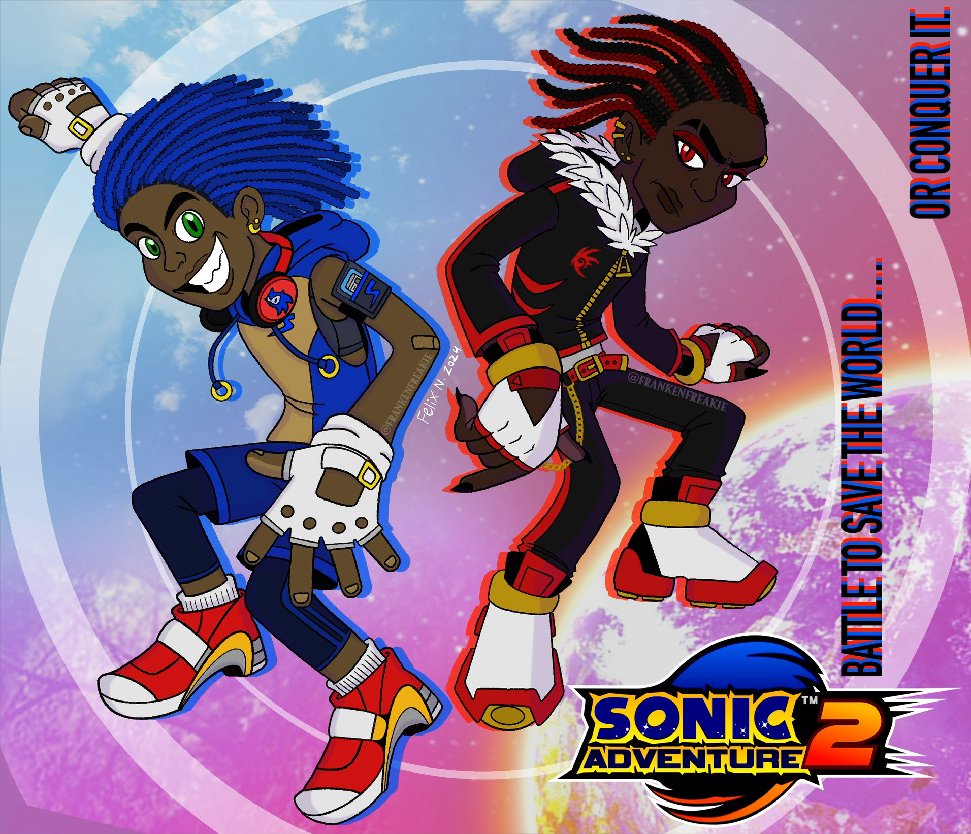safe37251 artist:frankenfreakie3 shadow the hedgehog6210 sonic the hedgehog13616 human2103 sonic adventure 2315 clothes1681 dark skin368 duo12291 fingerless gloves752 frown4617 gloves1756 headphones96 headphones around neck12 humanized753 looking at viewer8130 redraw1363 smile13997 soap shoes161 species swap218