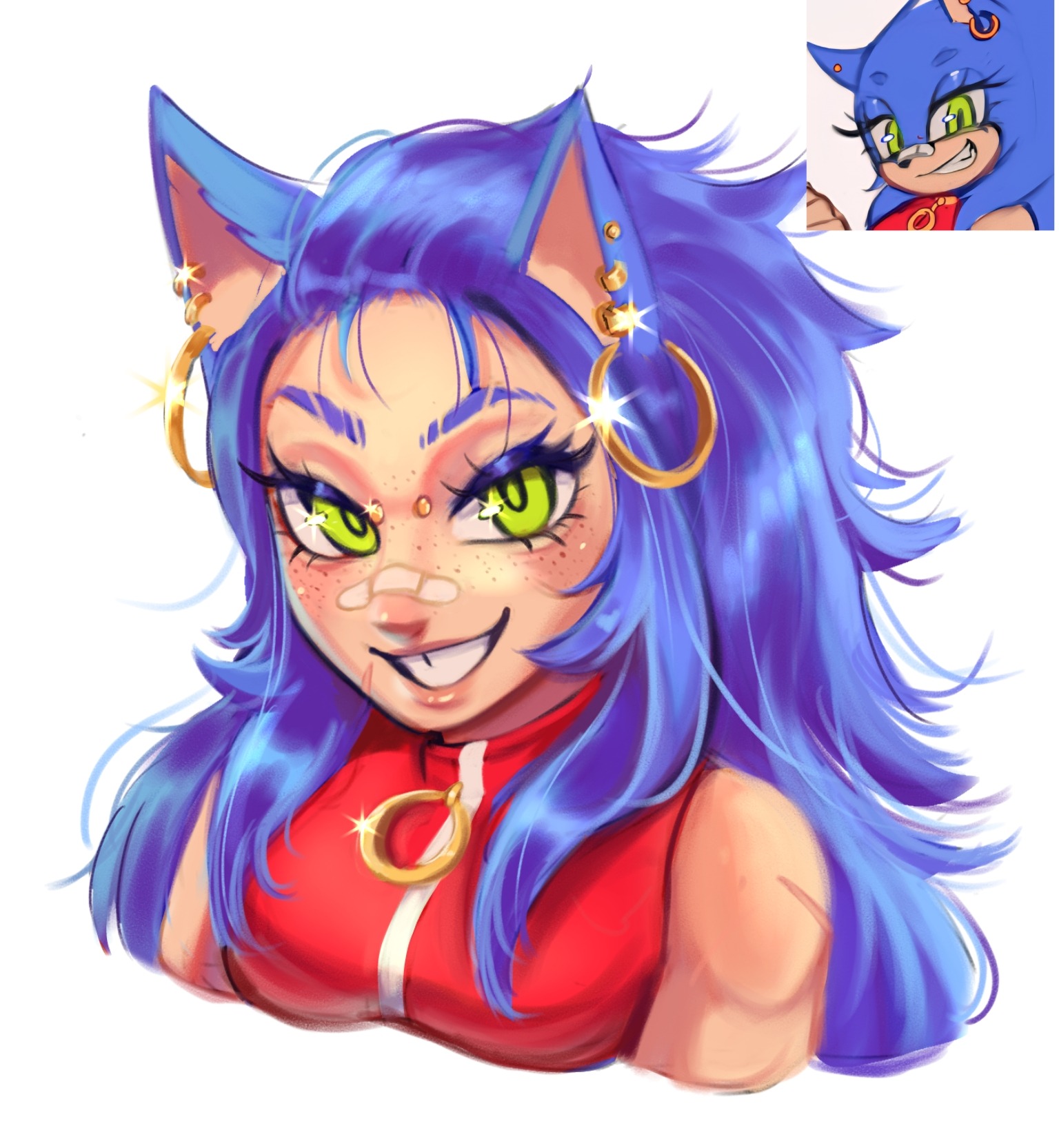 safe37267 artist:saintforan13 sonic the hedgehog13621 human2104 20253633 bandaid114 bust364 clothes1682 ear piercing365 earring372 eyebrow piercing13 eyelashes1110 face piercing23 female6189 freckles206 gender swap957 humanized754 jacket1049 lineless533 long hair59 partially humanized278 reference inset508 scar169 simple background15307 sleeveless jacket9 smile14010 smiling at viewer930 solo17008 species swap219