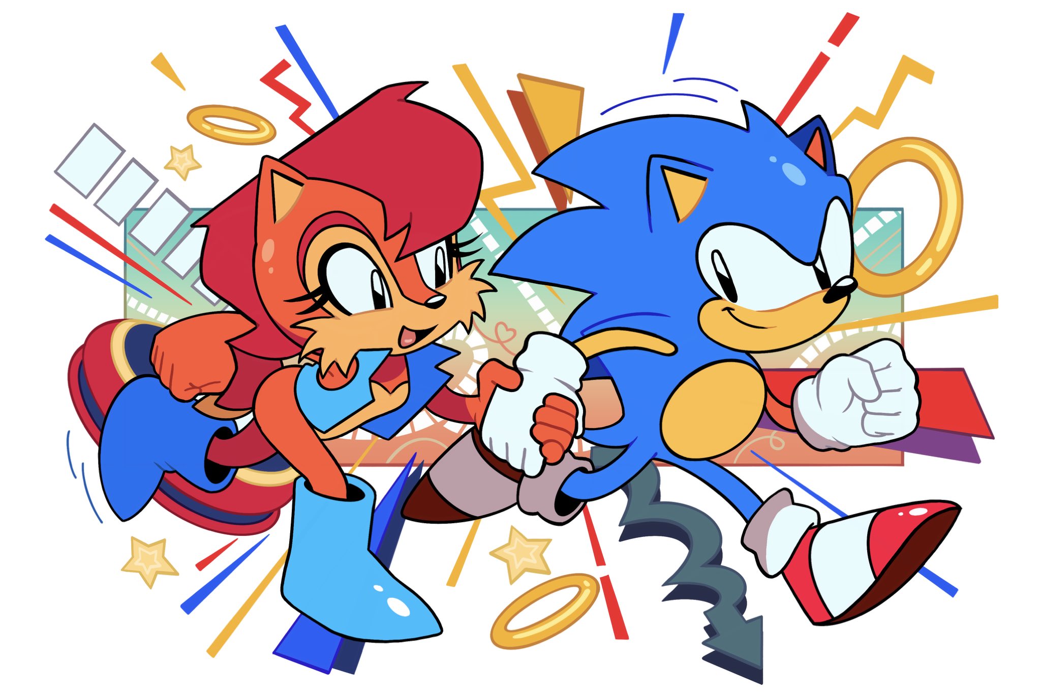 safe37709 artist:jadepesky29 sally acorn1339 sonic the hedgehog13739 chipmunk706 hedgehog7557 sonic mania95 20253780 classic sally13 classic sonic1017 daytime901 duo12486 female6361 holding hands1627 male6737 ring564 running630 sally x sonic367 sally's vest and boots184 shipping9967 straight1518