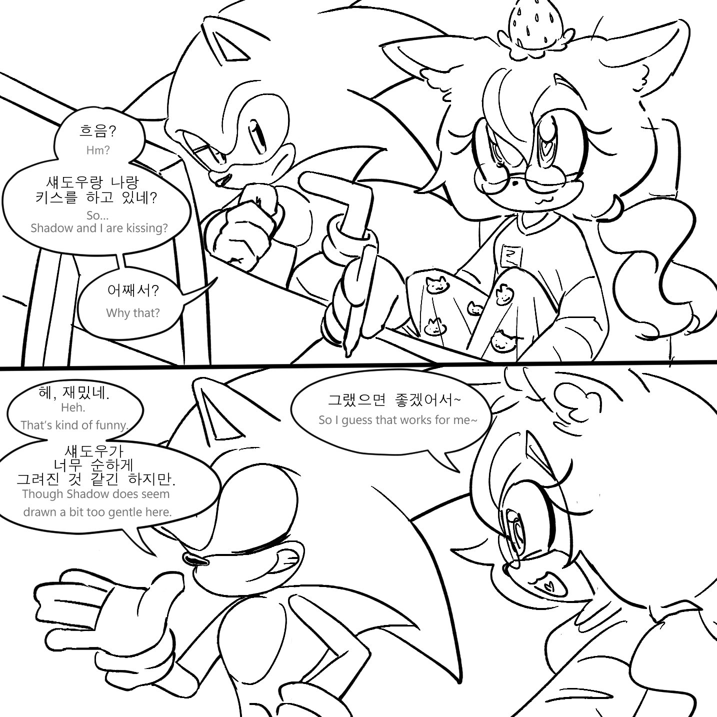 safe37729 artist:tamjeong_sonic317 sonic the hedgehog13752 oc2566 2026264 comic784 drawing29 duo12498 english text4328 eyes closed4738 glasses437 greyscale960 grin431 heart3255 holding something3549 implied gay18 implied shipping21 implied sonadow8 korean text264 monochrome2249 mouth open5766 simple background15568 smile14220 speech bubble1498 white background7653