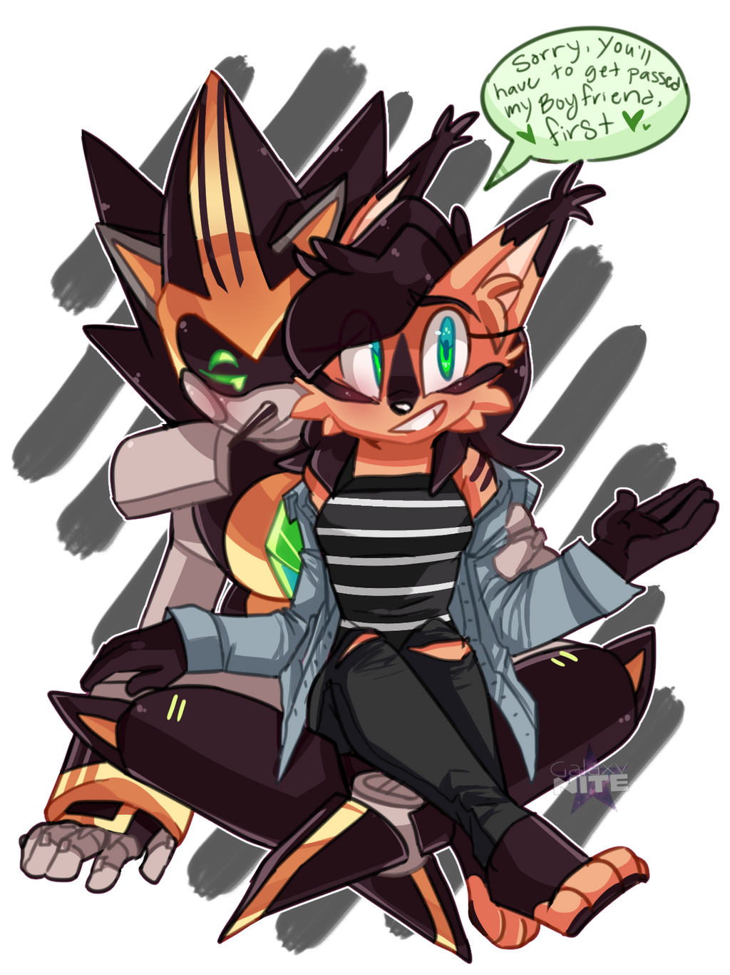 safe37733 artist:galaxynite14 nicole the hololynx342 shard the metal62 lynx113 2018640 alternate outfit1223 blank background9 clothes1754 dialogue2664 duo12501 english text4329 female6372 heart3257 hololynx85 jacket1074 male6751 robot1055 shardicole26 shipping9974 speech bubble1499 straight1523 watermark510