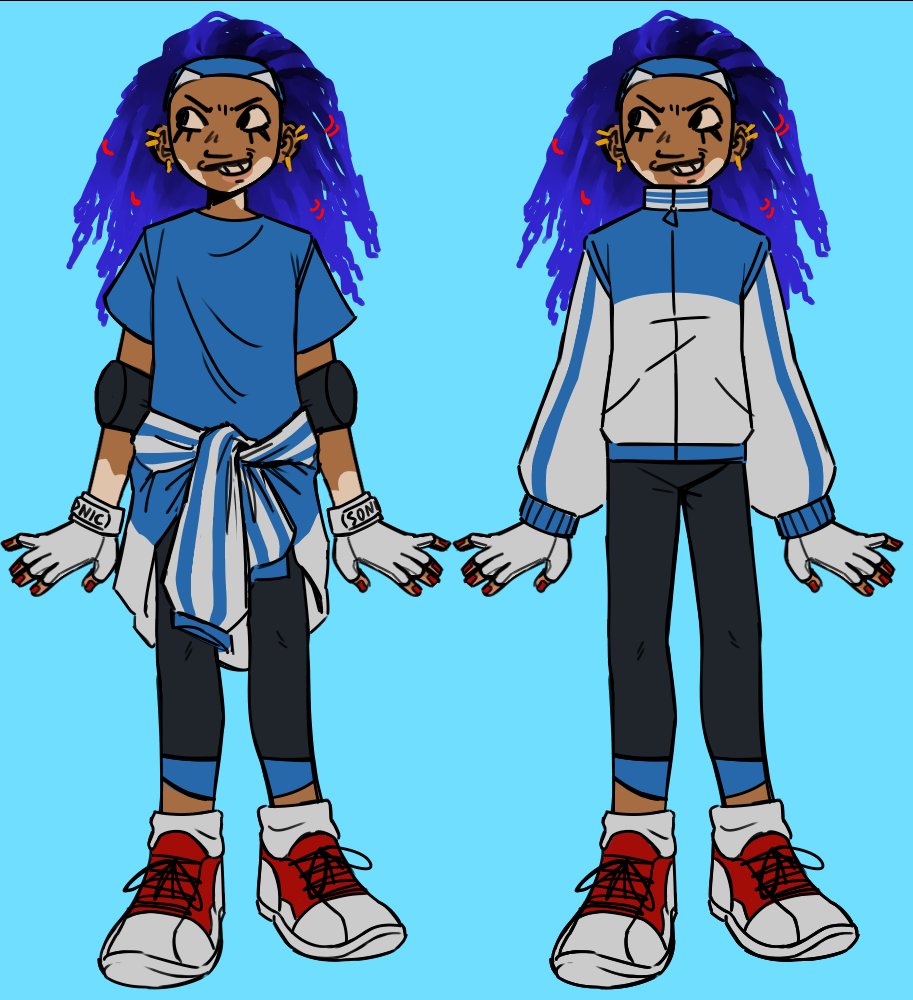 safe38145 artist:nightgarla17 sonic the hedgehog13993 human2197 20232645 blue background718 clothes1817 ear piercing373 earring378 eyelashes1188 fully clothed238 humanized781 jacket1092 jacket around waist15 looking offscreen4398 simple background15813 smile14445 solo17438 standing11088 vitiligo9