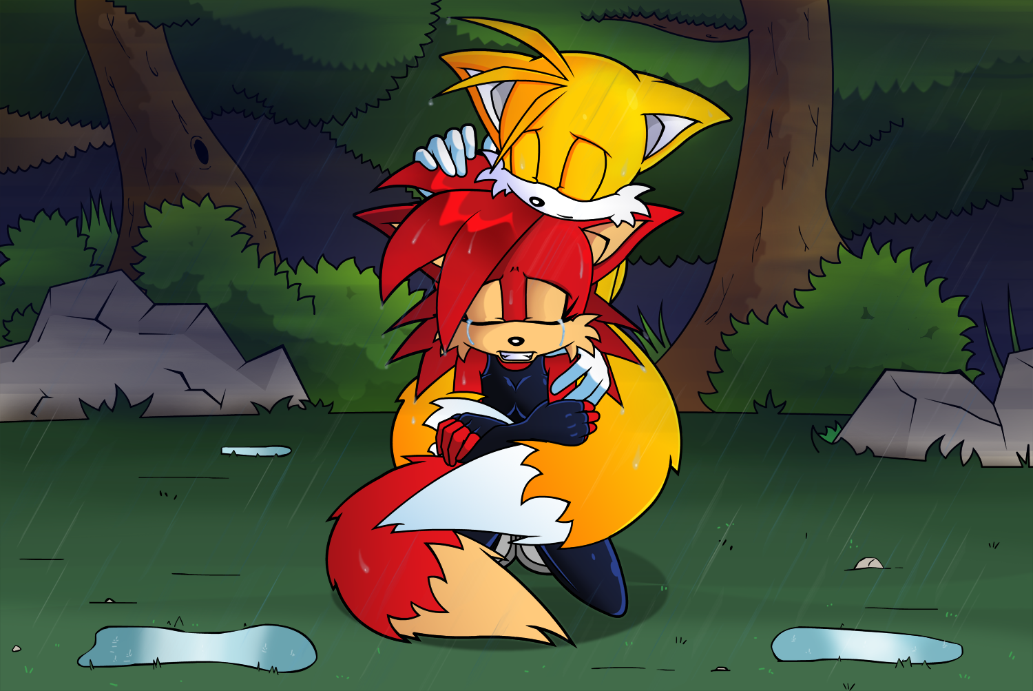 He wanted a picture of Tails and Fiona looking sad. Well, here you go. Sorry about the long wait. Also about the background :/ still not good at those.