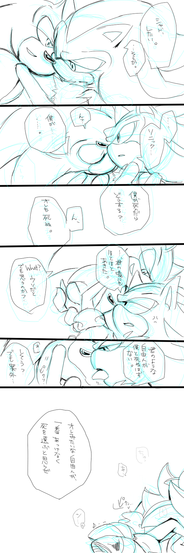 suggestive637 artist:sonikkushadowpearl2 shadow the hedgehog6483 sonic the hedgehog14011 2011159 close-up104 comic841 dialogue2702 duo12772 english text4416 eyes closed4809 gay5253 hugging1277 japanese text506 kiss1097 kiss on cheek432 licking105 licking chest5 lidded eyes4148 line art1614 monochrome2334 shadow x sonic1828 shipping10158 simple background15850 sketch1921 speech bubble1581 tail grab10 text738 tongue out849 white background7841