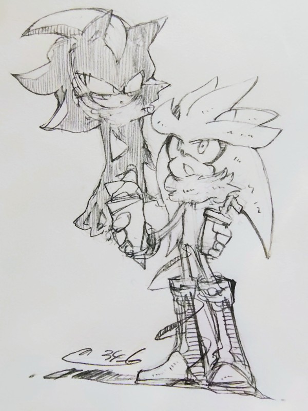 safe38736 artist:34_6226 mephiles the dark186 silver the hedgehog1975 2026492 cup85 duo13071 food515 grey background2504 greyscale1049 holding something3825 lidded eyes4214 looking at them2310 monochrome2359 mouth open6080 pencilwork448 signature6259 simple background16197 sketch1943 standing11278 traditional media1619