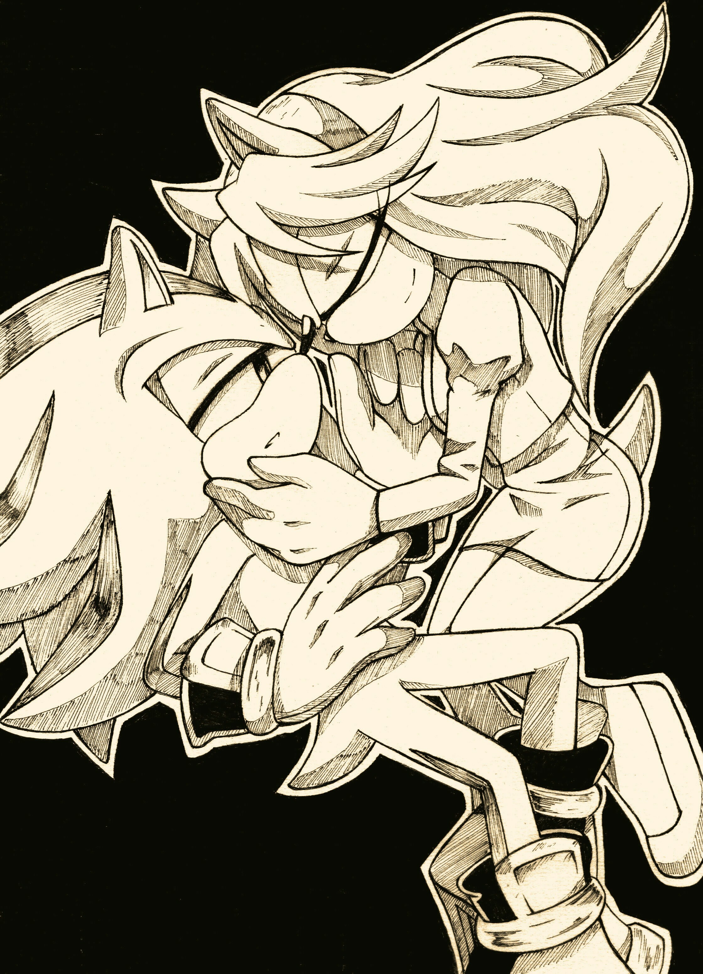 safe38899 artist:esbelle9 maria robotnik484 shadow the hedgehog6593 oc2619 oc:maria the hedgehog28 hedgehog7891 2017723 black background573 duo13153 eyes closed4912 holding each other1124 lidded eyes4238 looking at them2326 mobianified475 monochrome2387 outline1966 simple background16298 smile14927
