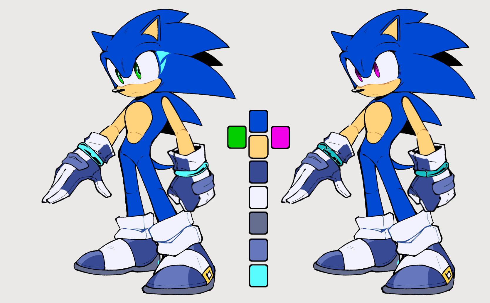 safe39205 artist:anhvo351135 sonic the hedgehog14441 20232727 alternate outfit1438 alternate universe936 au:darkleading34 blue gloves16 blue shoes299 color guide18 duality160 flat colors1475 frown4972 fur markings266 gloves1809 grey background2589 looking offscreen4671 shoes1370 simple background16613 solo18082