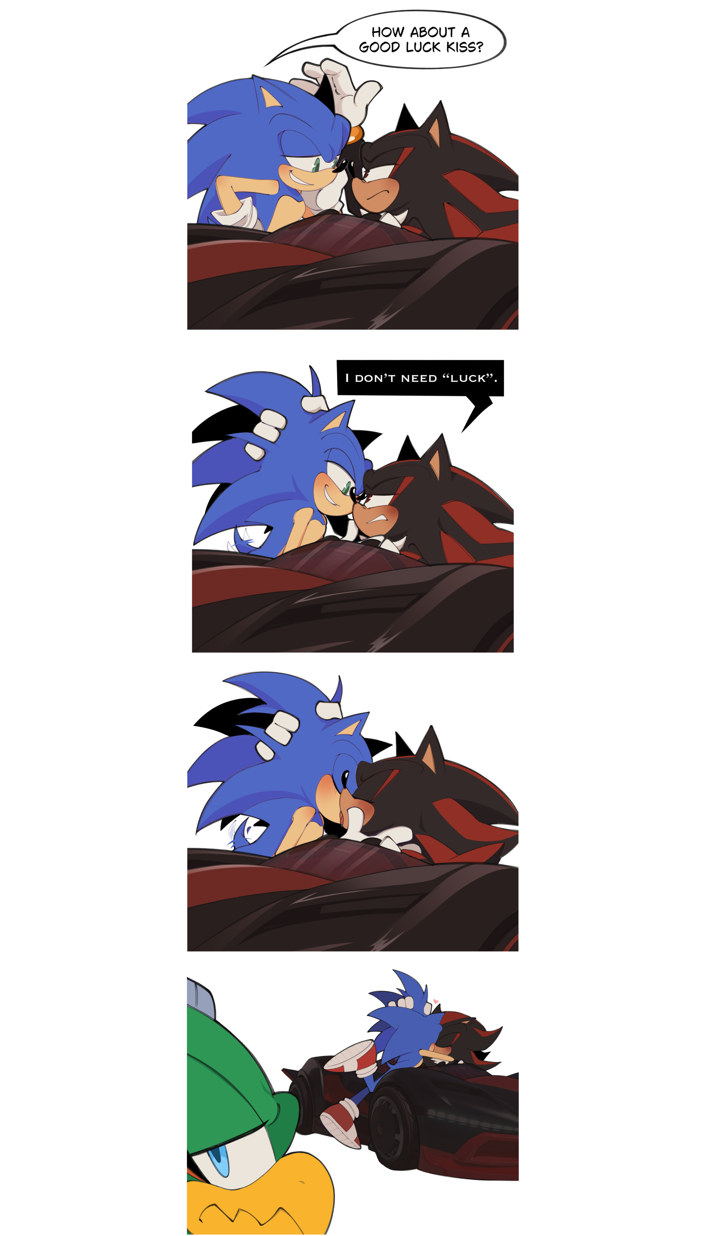 safe39282 artist:tenderandmilder8 jet the hawk341 shadow the hedgehog6687 sonic the hedgehog14483 anonymous editor17 blushing7039 car76 comic877 dialogue2842 edit623 english text4640 gay5430 grabbing26 holding each other1152 kiss1184 shadow x sonic1879 shipping10620 sonic racing crossworlds56 stitched35 text966 third wheel14 trio1925 vehicle75