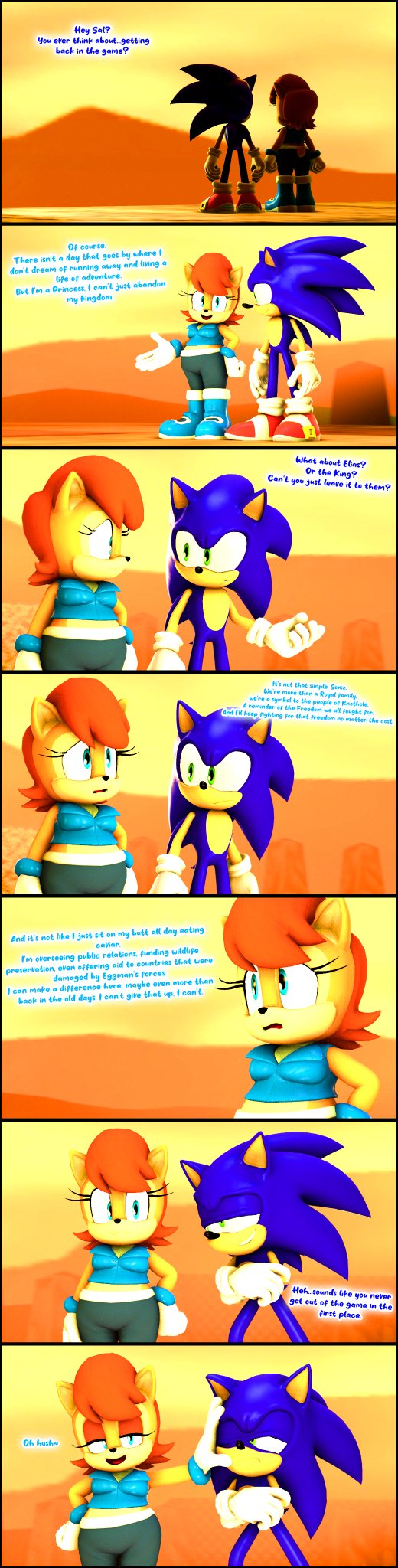 safe39667 artist:pixelrush8 sally acorn1740 sonic the hedgehog14651 chipmunk1132 hedgehog8306 20232767 3d1416 afternoon2 comic886 dialogue2878 duo13618 english text4714 fat57 fat sally acorn4 female7332 male7555 sally x sonic628 sally's ringblader outfit378 shipping10745 source filmmaker20 standing11639 straight1988