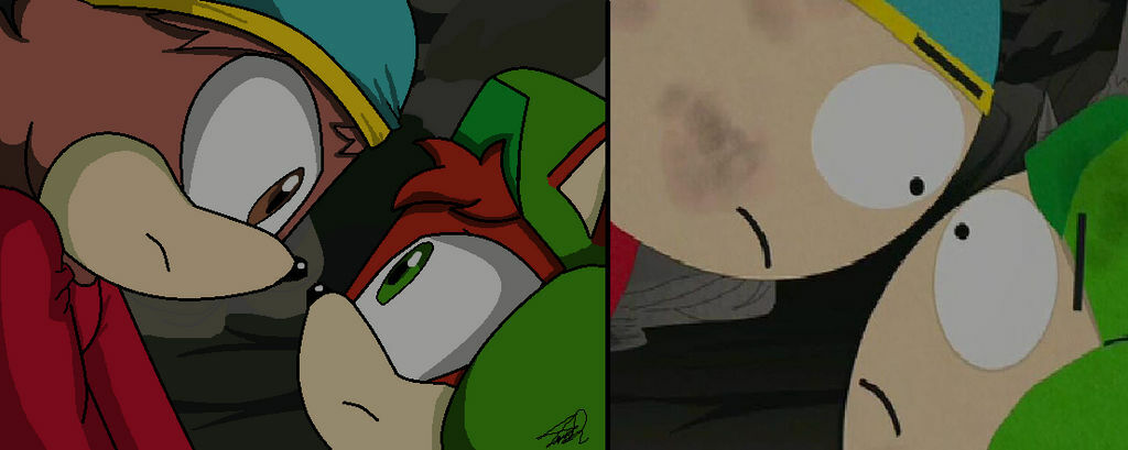 safe40028 artist:idalyaoisonic13447 2015345 barely sonic related225 beanie73 close-up114 coat141 duo13875 eric cartman16 frown5177 gay5519 hat517 kyle broflovski13 kyman1 looking at each other3033 mobianified499 reference inset569 shipping10941 side view271 signature6477 south park43 ushanka hat24