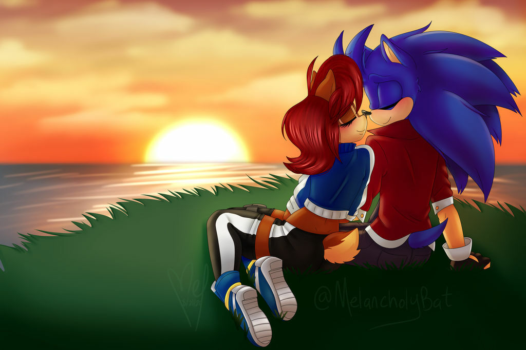 Sonic and Sally relaxing and watching the sunset, but maybe they're paying attention to each other a little more.