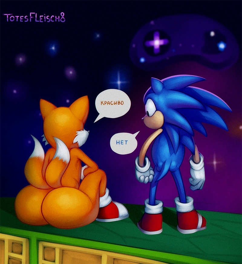 questionable555 artist:totesfleisch89 miles "tails" prower9926 sonic the hedgehog15059 sonic mania101 bootyfull tails60 butt711 classic sonic1091 classic tails635 constellation5 controller29 dialogue3033 duo14230 nighttime634 no mouth175 outdoors1997 raised tail84 russian text21 signature6620 sitting2799 speech bubble1877 standing12009 star (sky)569 text1251