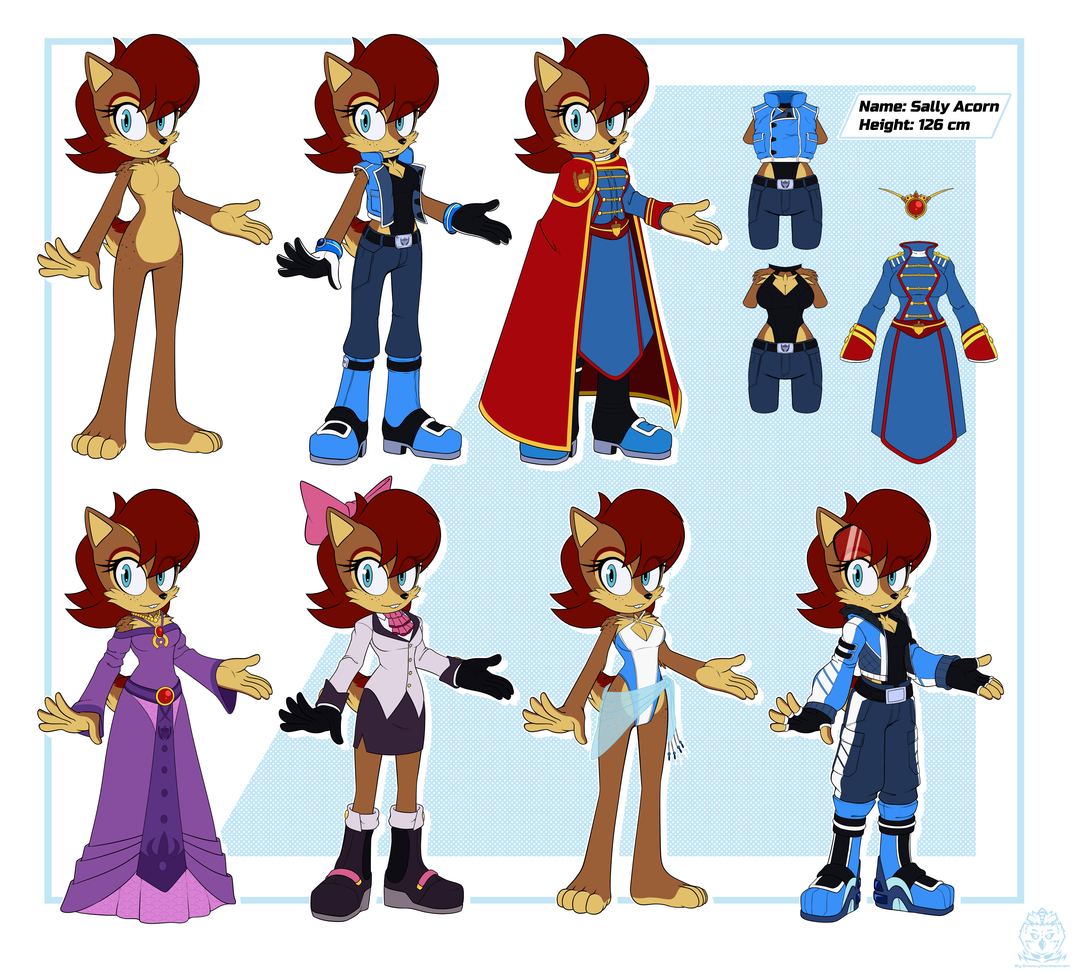 Born as the heir to the Kingdom of Acorn to King Nigel Maximillian Acorn and Queen Alicia Acorn during the Great War, in the first few years of her life, Sally lived carefree, always playing and enjoying life with her family, unaware of the conflicts surrounding her. One day she would encounter a blue hedgehog named Sonic who had, in his boredom, intruded into the Royal Castle grounds for fun. Intrigued by this bold interloper, the two would talk and quickly become good friends, regularly hanging out to play and cause mischief. He would also be a source of comfort after the mysterious disappearance of her mother and older brother.